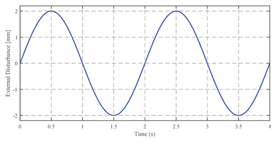 - Disturbance-Induced Case: The eccentric cam mechanism is activated to impose a sinusoidal disturbance force (Figure 13) while maintaining the same step force commands (Cases A–E). The controllers’ability to reject disturbances and maintain stable force output is quantified by analyzing force fluctuation amplitudes and recovery times. All experiments are repeated three times to ensure statistical reliability.