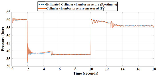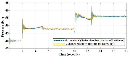 The estimated and measured piston-side and rod-side chamber pressures are shown in Figure 6 and Figure 7.