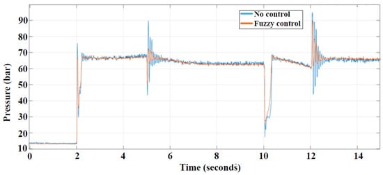 With the introduction of powerful microprocessors, fuzzy control systems are employed for real-time control of electrohydraulic systems. Chen et al. [29] employed fuzzy control to improve the ride comfort of an automobile using a hydraulic actuator. Sivakumar et al. [30] also employed a fuzzy logic control for real-time control of hydraulically actuated active suspension and experimentally demonstrated the results. Position control of a hydraulic actuator was performed using a fuzzy logic controller, with fuzzification parameters optimized with the particle swarm technique in [31].