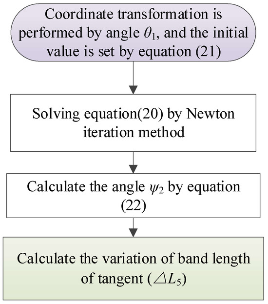According to the inclination angle stated in Equation (2), the belt length variation caused by the oscillation of the tensioning arm can be obtained by Equation (7). The calculation process of length variation is shown in Figure 6.