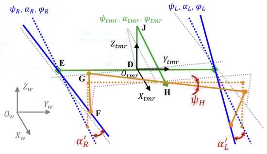where are the relative angles between the track mechanism and the body on both sides. According to the motion relationship of such a multi-link mechanism calculation [24], the angle relationship is