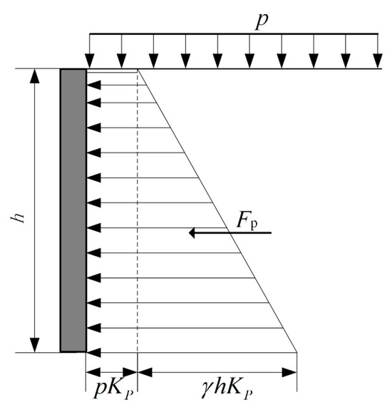 where is passive earth pressure, is passive earth pressure coefficient, , is internal friction angle of soil, is the soil bulk density, and is depth of soil.