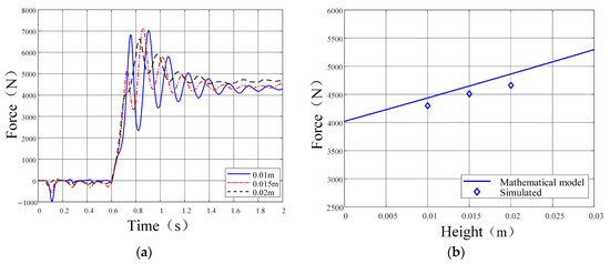 Relationship between soil thrust and grouser height: (a) soil thrust vs. time; (b) soil thrust vs. height.
