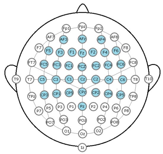 The 10–20 system is a standardized system to place the EEG electrodes on the scalp, based on the relative position of specific distances from region to region of the brain. For this experiment, the electrodes were placed over the motor cortex.