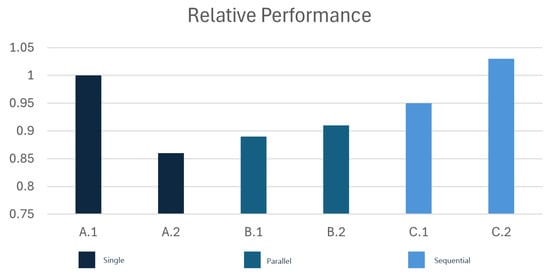 A 10-fold cross-validation approach was used to evaluate classifier performance. The dataset was partitioned into 10 subsets; the model was trained on 9 subsets and tested on the remaining one. To ensure the generalizability of our results and avoid dependence on a single data split, this entire 10-fold process was repeated multiple times with different random seeds. The final accuracy reported is the average across all folds and repetitions. The performance results of the different hybrid schemes were compared by calculating the relative accuracy improvement over the single-signal EMG scheme (A.1), which served as the baseline.