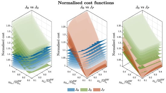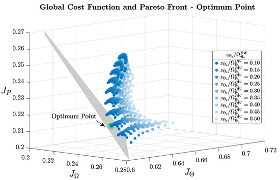 Finally, the global cost function is defined as a weighted linear combination of the individual terms Ji, normalized by their respective minimum values to ensure comparability among different metrics (16). The minimum of Equation (16) yields the optimal placement of the PI controller zeros.