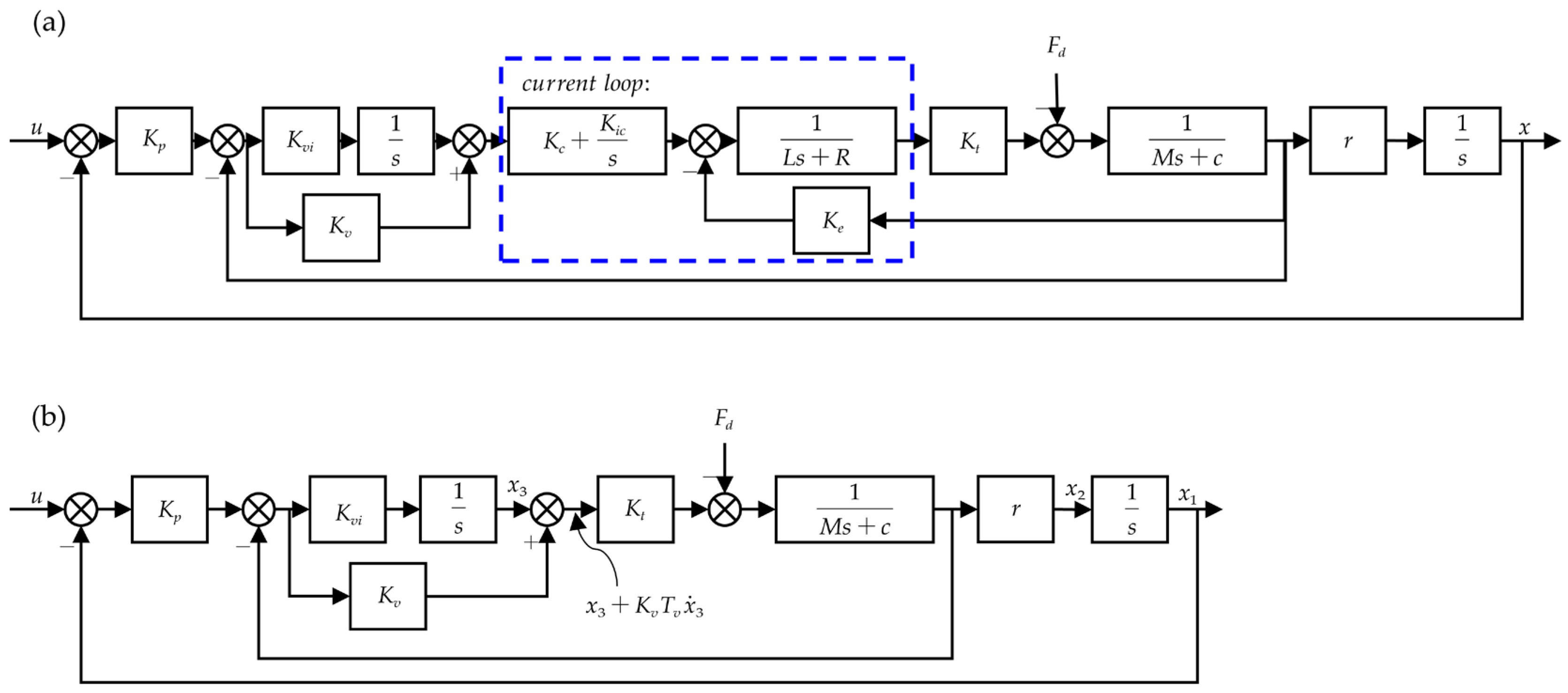 Figure 2b), the third-order state—representing the integral component of the velocity loop—is not directly observable from the servo drives. This component is estimated based on current loop data.