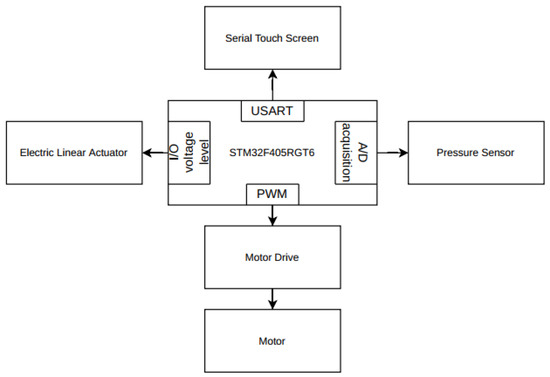 The control system of the oil sampler serves as the core hub for the precise and stable operation of the entire equipment. Its primary goal is to achieve high-precision control of the various mechanical components of the oil sampler, thereby meeting the diverse requirements of oil sampling operations under different working conditions. From a technical implementation perspective, leveraging advanced sensor technology, mature and reliable control algorithms, and efficient and convenient communication methods enables precise and accurate manipulation of key components such as motors, transmission devices, and measurement instruments [26]. The overall block diagram of the oil sampler control system is shown in Figure 7.