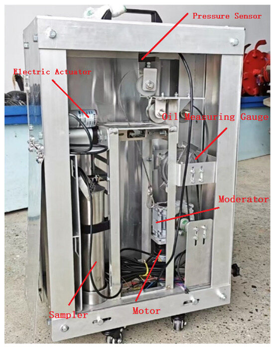 To verify the feasibility of the oil sampling machine design and the superiority of the CSSA-PID control algorithm, a hardware experimental platform for the oil sampling machine was built, as shown in Figure 17. This experimental platform mainly consists of core components such as a pressure sensor, electric actuator, oil gauge, reducer, motor, and sampler. The STM32f405RGT6 microcontroller serves as the control core, enabling the automatic sampling and measurement functions of the oil sampling machine.