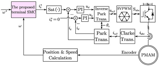 - Li, S.; Zhou, M.; Yu, X. Design and Implementation of Terminal Sliding Mode Control Method for PMSM Speed Regulation System. IEEE Trans. Ind. Inf. 2013, 9, 1879–1891. [Google Scholar] [CrossRef]