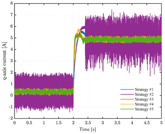 q-axis currents of the five strategies under 200 rpm.