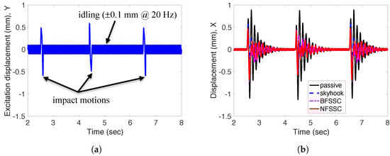 - Choi, S.B.; Choi, Y.T.; Park, D.W. A sliding mode control of a full-car electrorheological suspension system via hardware-in-the-loop simulation. ASME J. Dyn. Syst. Meas. Control 2000, 122, 114–121. [Google Scholar] [CrossRef]