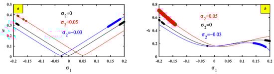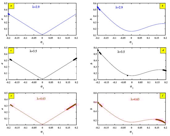 where  is the Jacobin matrix of the Equations (31)–(34). The eigenvalues of  can be written as