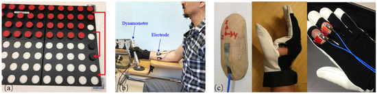 - Larivière, C.; Plamondon, A.; Lara, J.; Tellier, C.; Boutin, J.; Dagenais, A. Biomechanical assessment of gloves. A study of the sensitivity and reliability of electromyographic parameters used to measure the activation and fatigue of different forearm muscles. Int. J. Ind. Ergon. 2004, 34, 101–116. [Google Scholar] [CrossRef]