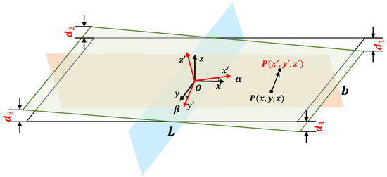 With the rotation of the platform, inclination angle is composed of pitch angle around the x- and roll angle around the y-. Suppose that when the outrigger platform is tilted, the position of point P on the platform changes from to , which can be obtained according to the theory of attitude change.