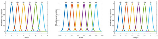 Furthermore, in order to balance the maximum load variation and synchronization effect among outriggers dynamically, and combined with the actual requirements of the crane, the rule design of the fuzzy controller should be directly based on engineering experience or experimental data [21]. This approach provides the intuitive mapping between the load variation and the weight adjustment and reduces the dependency on precise system models to ensure real-time performance. Therefore, this paper employs a real-time and reliable Mamdani fuzzy controller, which contrasts with the complex rule design and strong dependence on mathematical models [20] of the T-S fuzzy controller, as well as the adaptive fuzzy controller that requires online computing resources [20]. The dynamic calculation of the variable weight Q is achieved through this fuzzy controller.