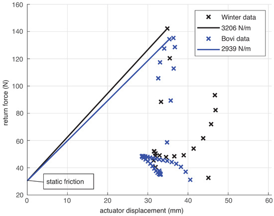 - Chen, D.; Yun, Y.; Deshpande, A.D. Experimental characterization of Bowden cable friction. In Proceedings of the 2014 IEEE International Conference on Robotics and Automation (ICRA), Hong Kong, China, 31 May–7 June 2014; IEEE: Piscataway, NJ, USA, 2014; pp. 5927–5933. [Google Scholar]