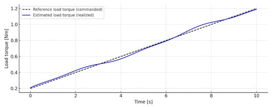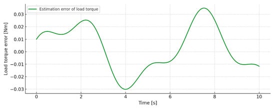 The maximum error observed in the assessment of the load torque reaches values of up to 0.20 Nm, but this is typical for the short transition moments associated with sudden changes in the set load.