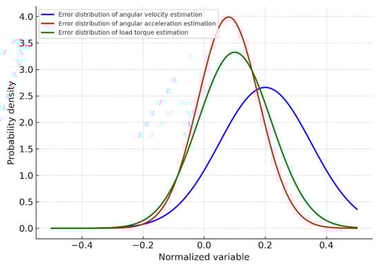 A graphical representation of the error distribution in the load moment estimation is illustrated in Figure 17 by histograms and continuous probability density estimation functions obtained by the Kernel Density Estimation (KDE) method. All approximation curves demonstrate two pronounced extremes, reflecting the characteristic dynamics of the system.