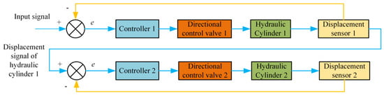 As conceptually illustrated in Figure 4 and Figure 5, synchronous control mechanisms for segment erectors are typically based on either series-connected or parallel-connected systems. The series-connected configuration offers structural simplicity and enhanced disturbance rejection but is limited by a compromised dynamic response and steady-state performance. In contrast, the parallel-connected configuration provides a superior transient response yet suffers from implementation complexity, including intricate control signal pathways and a high susceptibility to stability degradation from multi-source disturbances. This fundamental trade-off in performance guides their application: TBMs often utilize series-connected systems for operational reliability in uncertain geological environments, whereas shield-type erectors, which require high precision, preferentially adopt parallel-connected systems to achieve millimeter-level positioning accuracy.