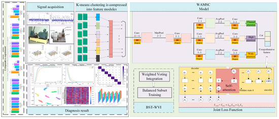 Recent studies have attempted to open new perspectives from control theory or meta-learning. Zhao et al. [29] constructed an unsupervised domain-adaptive diagnosis framework that enhances fault identification through adaptive iterative learning; Song et al. [30] designed a self-triggered fault-tolerant controller based on fuzzy wavelet neural networks, using dual compensation mechanisms to improve actuator fault robustness; Xia et al. [31] proposed an enhanced discriminative meta-learning diagnosis framework that employs data-augmented quasi-meta training with limited labeled fault information to promote model generalization in the target domain. However, these methods have not simultaneously addressed the two major challenges of “noise suppression” and “imbalanced learning”, and still suffer from incomplete feature extraction, heavy computation and uneven performance allocation.