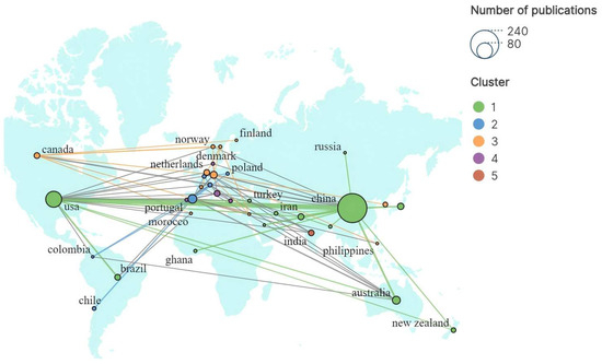 Figure 3 illustrates the global distribution of contributing countries and their collaborative networks in the field of autonomous driving agricultural machinery research. The figure reveals that scholars from China and the United States rank highest in publication output, suggesting strong market demand and substantial research investments in precision agriculture and intelligent production in both countries. Additionally, Australia, Japan, India, Brazil, and several European nations have also made notable contributions. These countries either possess large populations with high food demand or exhibit advanced agricultural systems with a strong emphasis on intelligent production, thereby promoting the development of autonomous driving agricultural machinery.