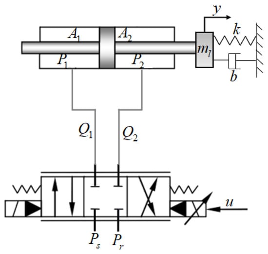 where is the mass of the load, is the load’s displacement, and are the pressure of the two chambers, and represent the effective areas of the two chambers of the hydraulic cylinder, and denote the equivalent viscous damping coefficient and elastic coefficient.