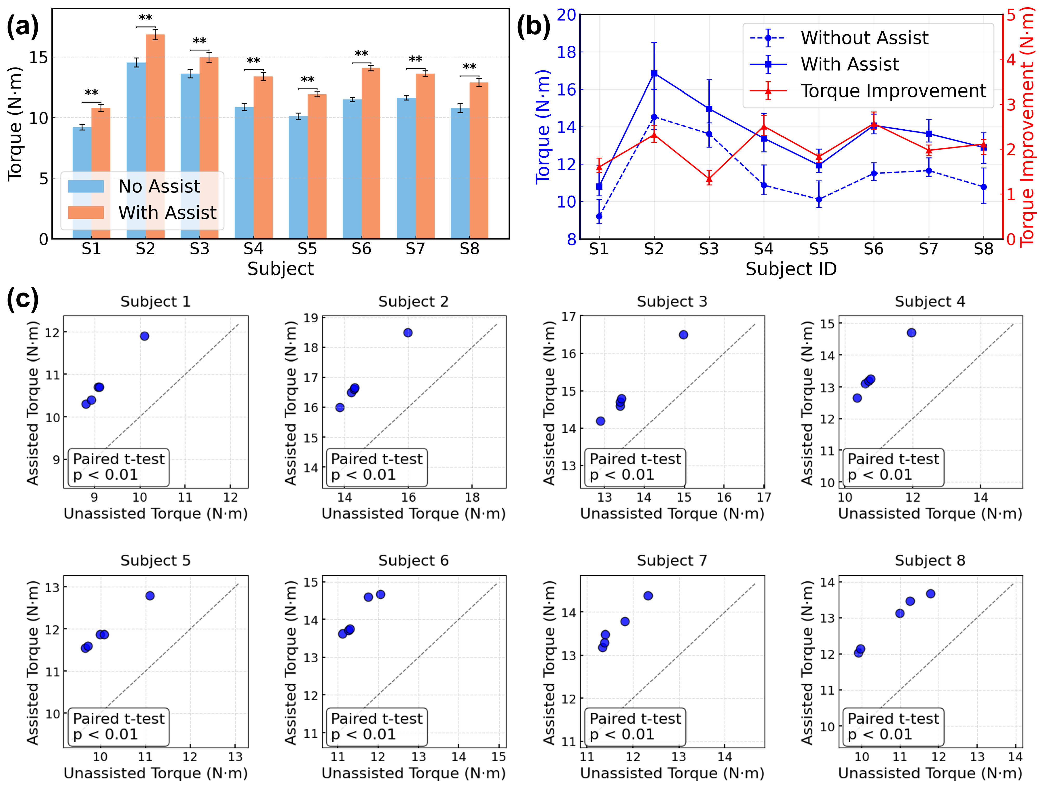 | Subject ID | Unassisted Torque (N·m) | Assisted Torque (N·m) | Torque Enhancement (N·m) |