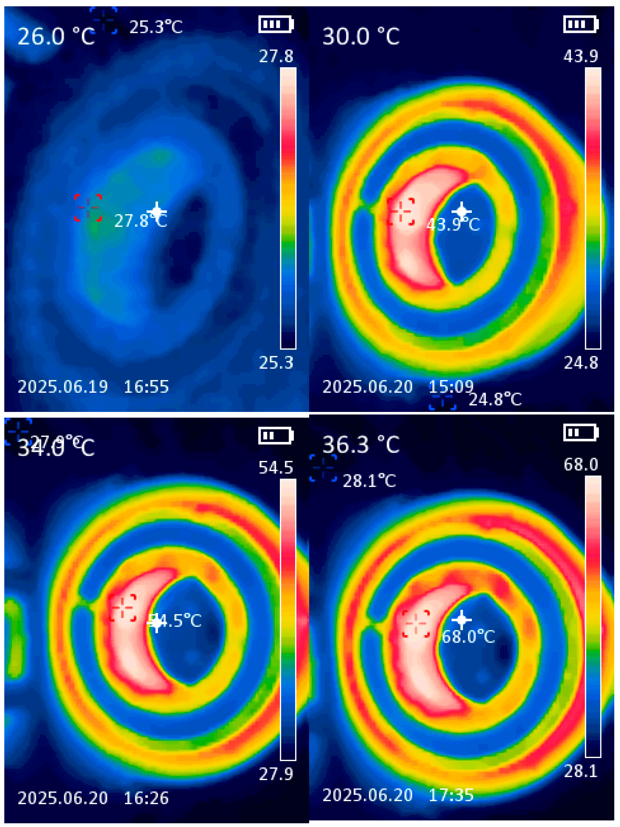 Figure 27). For each step, the current was held until the coil temperature stabilized for 5 min (it took more than 1 h for each step to reach a steady-state value).