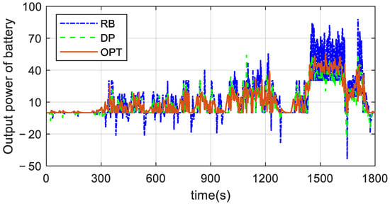 Comparison of battery output power under three control methods.