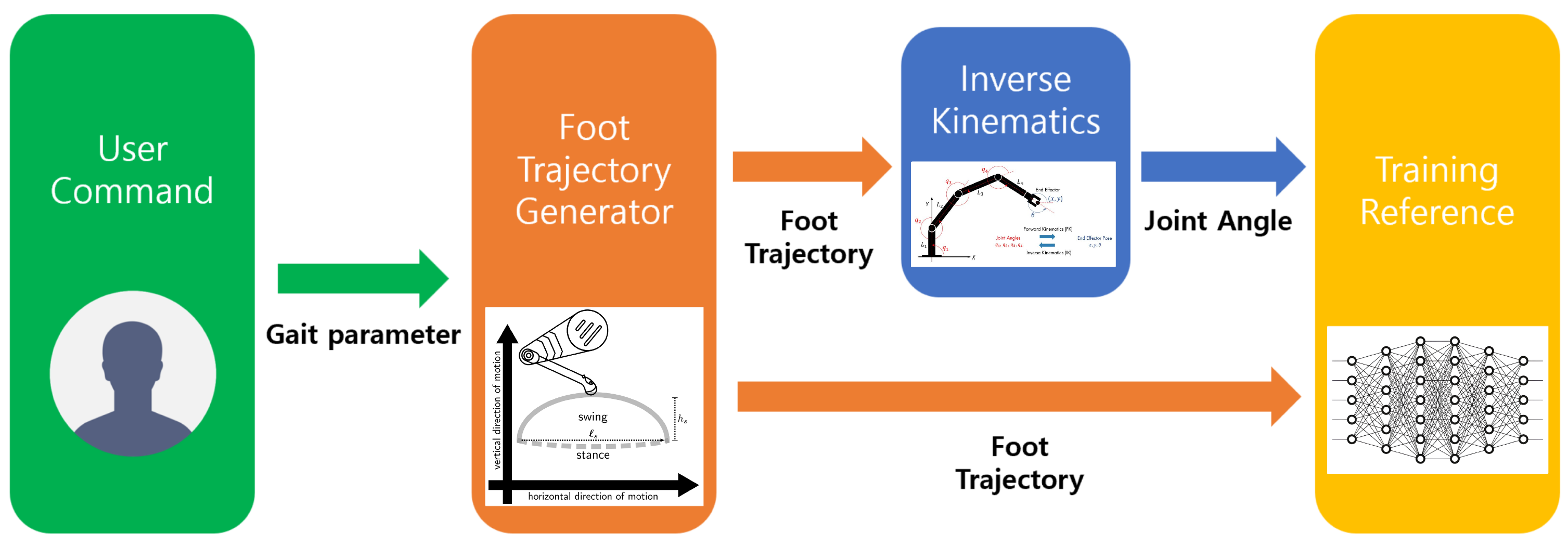 h (0.07 m in our implementation). This generates a natural foot-lifting motion with sufficient ground clearance.