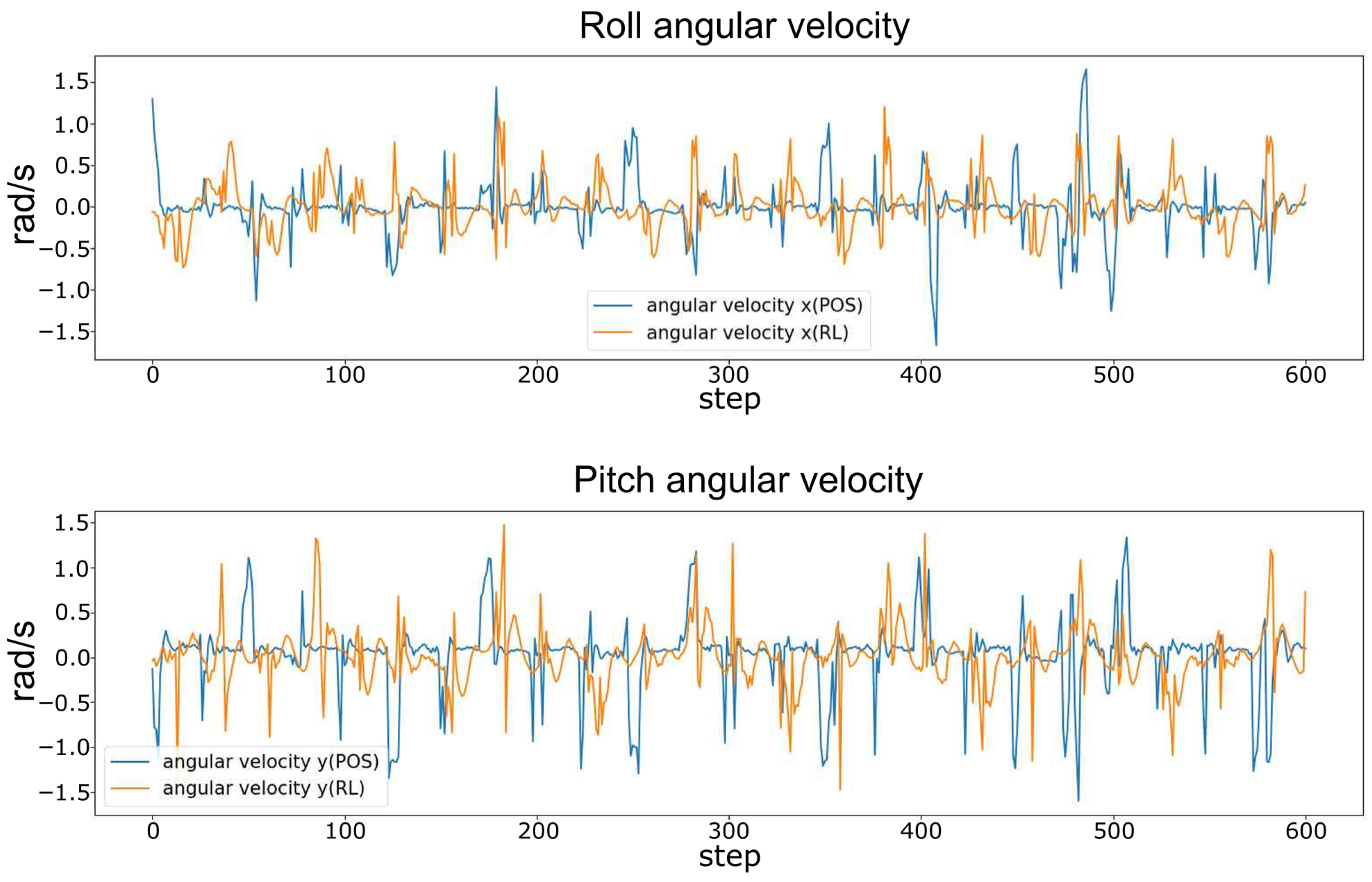 Hexapod robot’s angular velocity of roll and pitch in real-world environment.