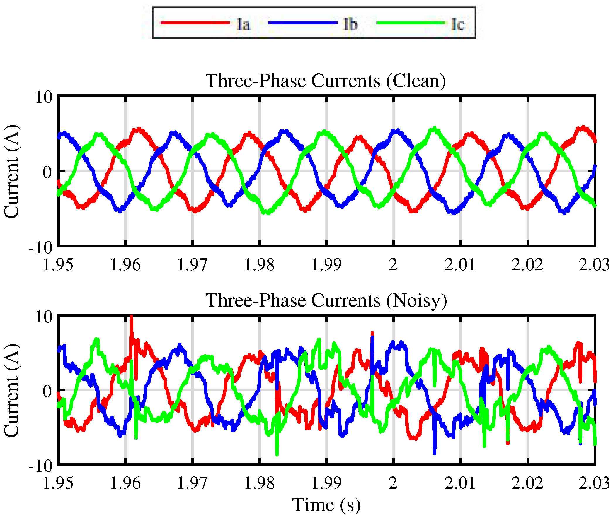 Clean and noisy three-phase currents.