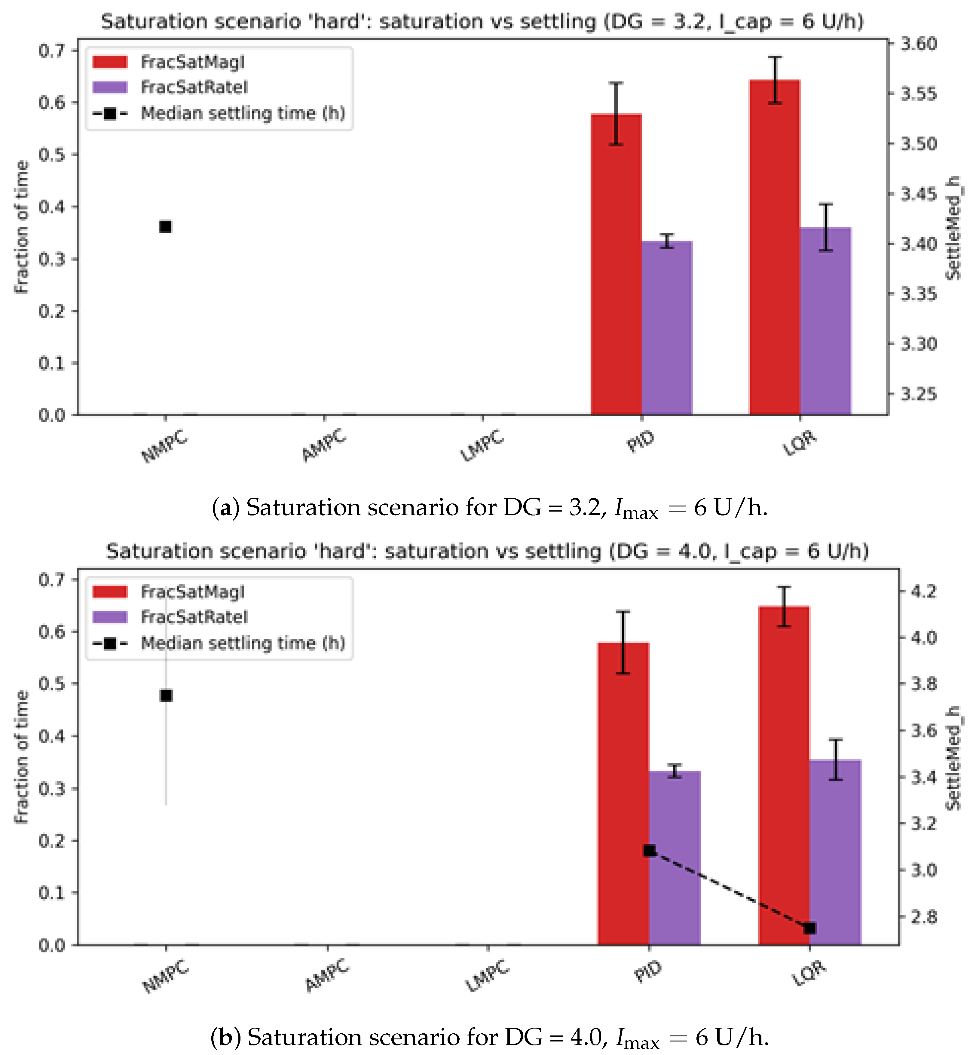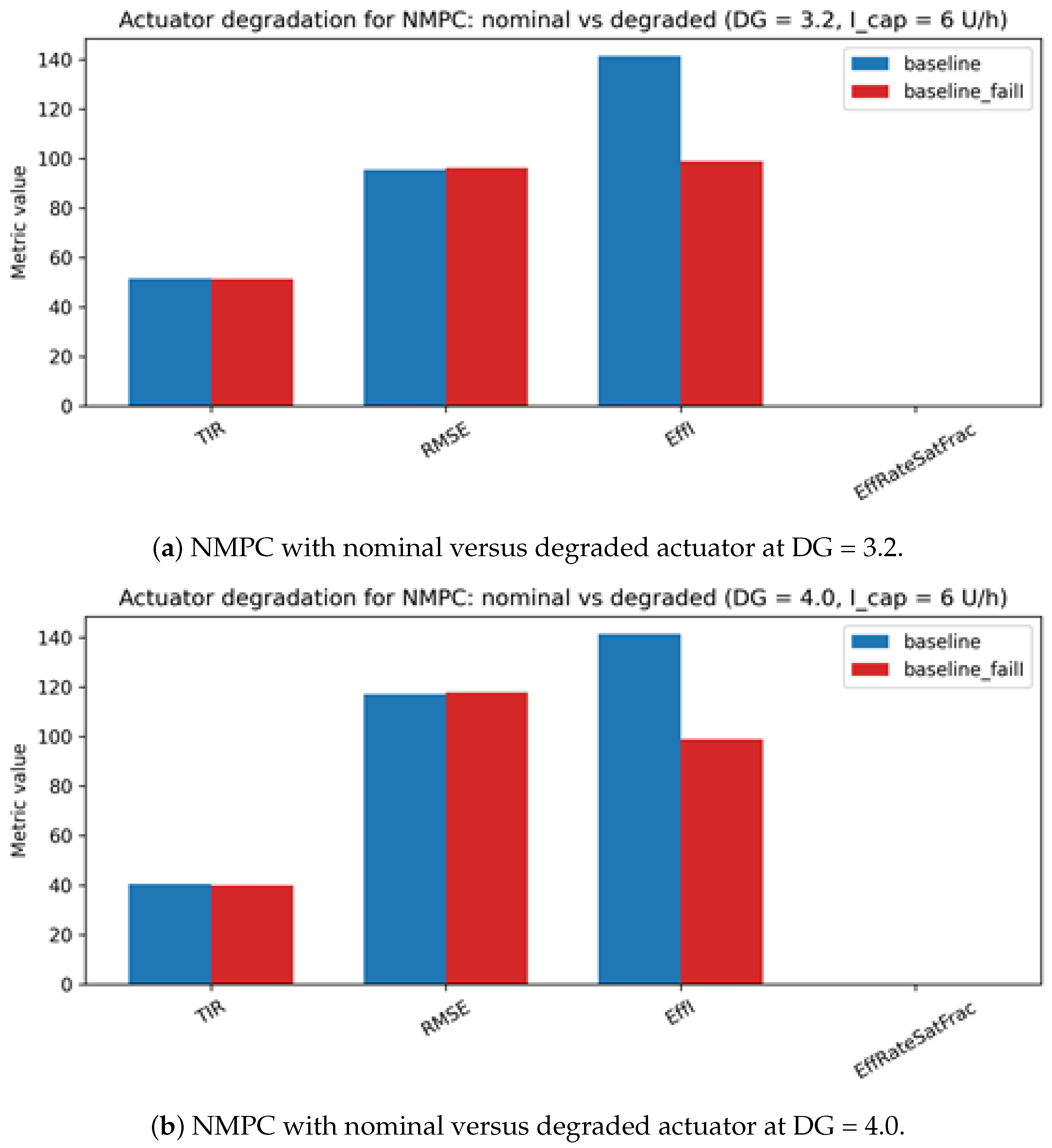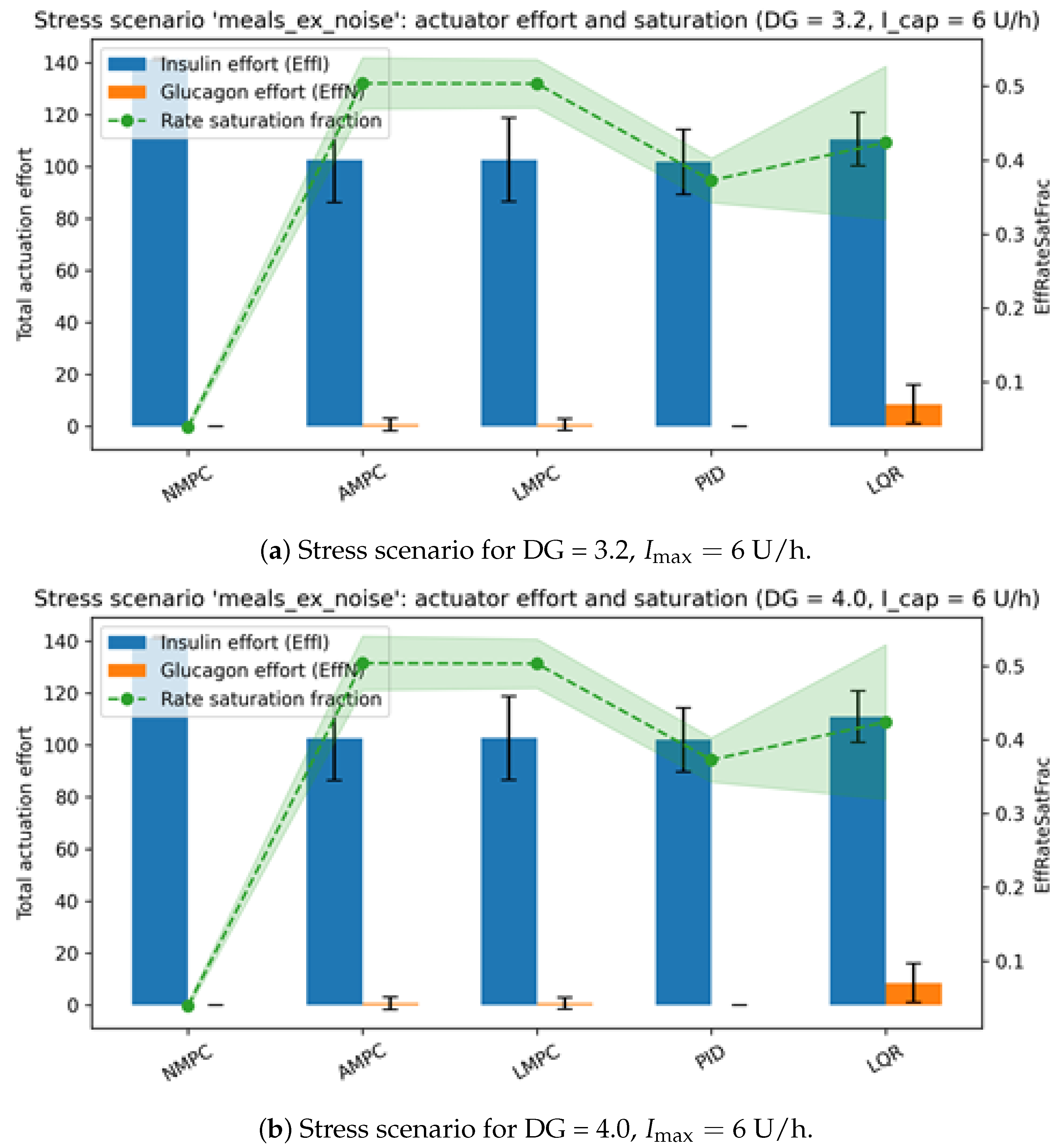 7]. Although these metrics remain essential for evaluating safety and efficacy, they do not fully characterize actuator workload, saturation events, or vulnerability to fault-induced degradation. Nonlinear model predictive control (NMPC) has demonstrated consistent advantages over proportional–integral–derivative (PID) controllers [