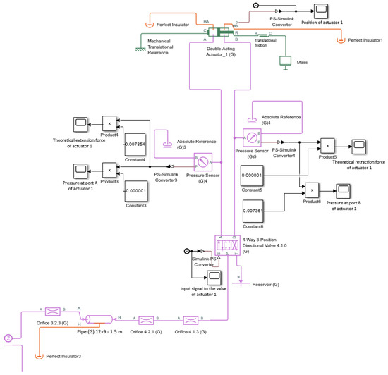 - MathWorks.com. Pneumatic Actuation Circuit. Available online: https://www.mathworks.com/help/simscape/ug/pneumatic-actuation-circuit.html (accessed on 1 December 2025).