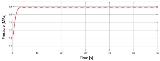 From Figure 16, it can be observed that the pressure behind the regulator gradually approaches its target value of 0.6 MPa, which the regulator continuously attempts to maintain at a stable level throughout the simulation.