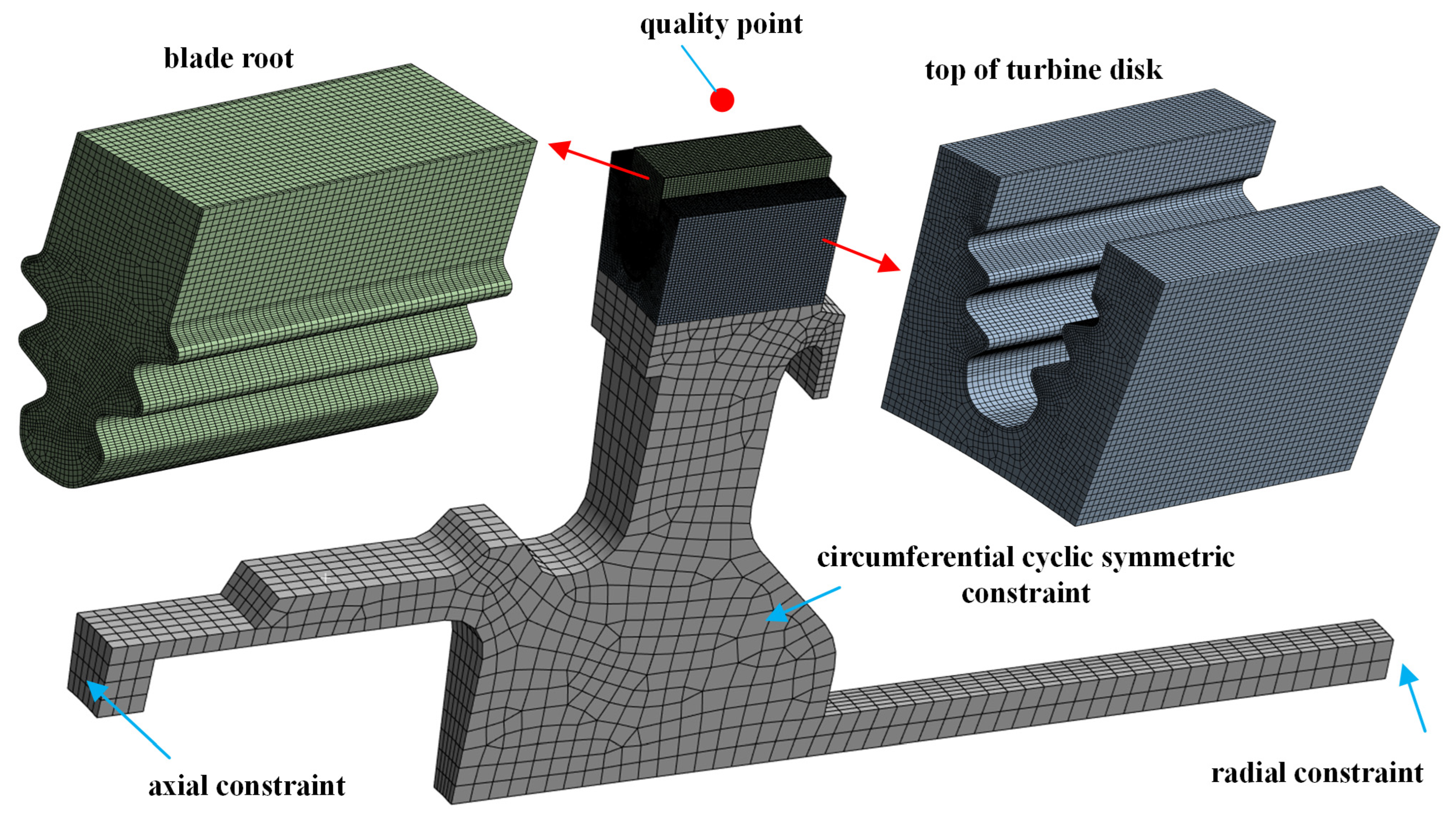- Yan, H.; Ding, X.; Huang, D.; Yan, X.; Yang, X.; Liu, H. Strain distribution of a fir-tree tenon/mortise structure under combined high and low cycle fatigue loads. Fatigue Fract. Eng. Mater. Struct. 2024, 47, 3474–3485. [Google Scholar] [CrossRef]