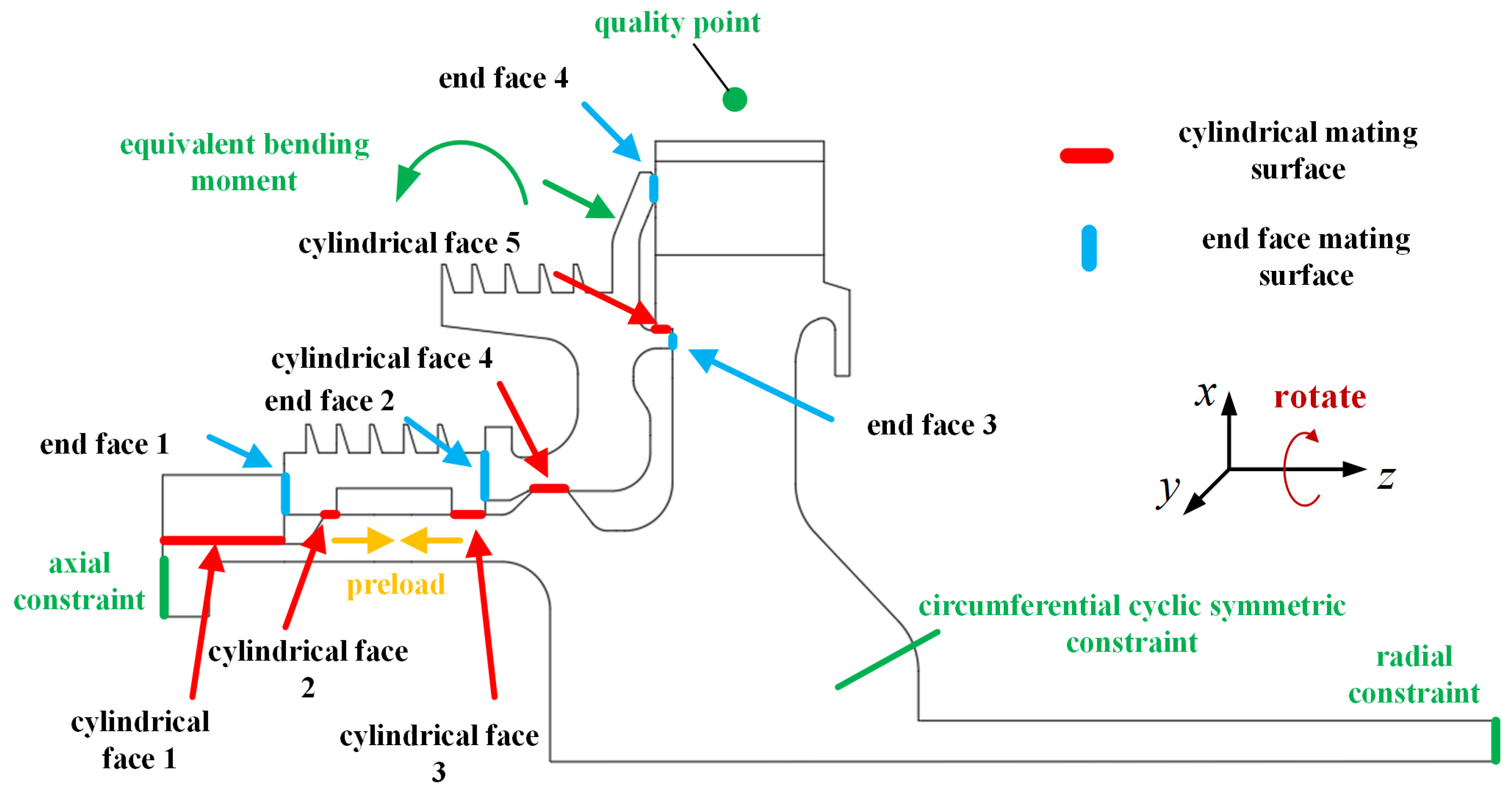 - Establish a FEM of the turbine rotor assembly and clarify the operating load environment, initial assembly parameters and contact interface parameters such as the friction coefficient required to calculate the interface contact state.