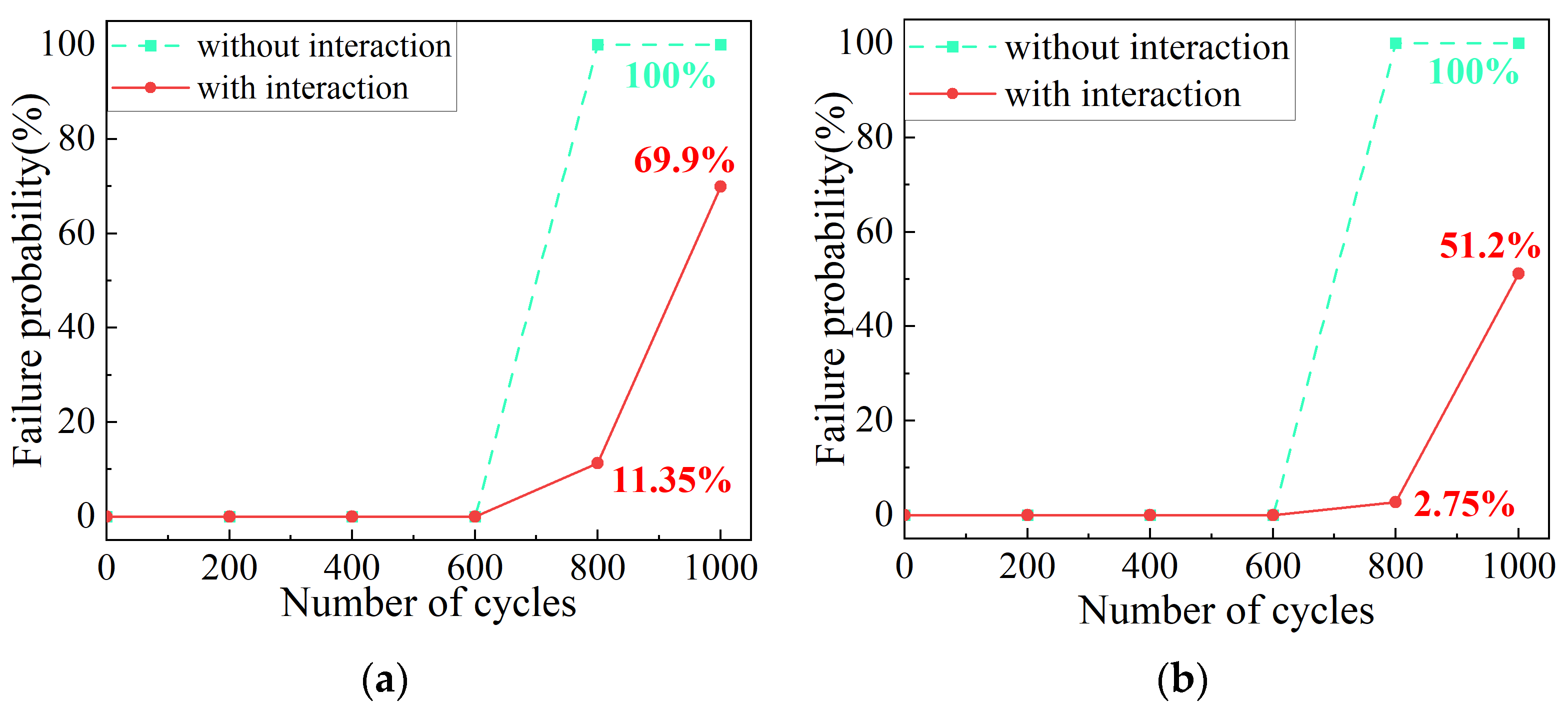| Failure probability (within 800 cycles) | 13.88% | 15.22% | 15.90% |