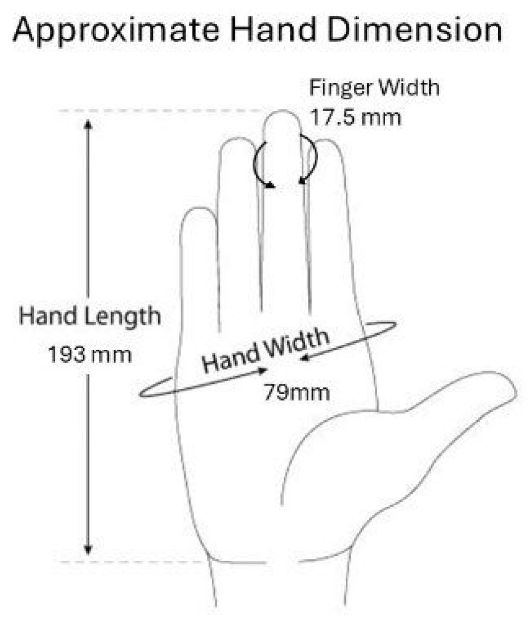 Device adaptability was incorporated into the design using average adult hand anthropometrics (length ≈ 193 mm, width ≈ 79 mm, finger width ≈ 17.5 mm), corresponding to a medium glove size (