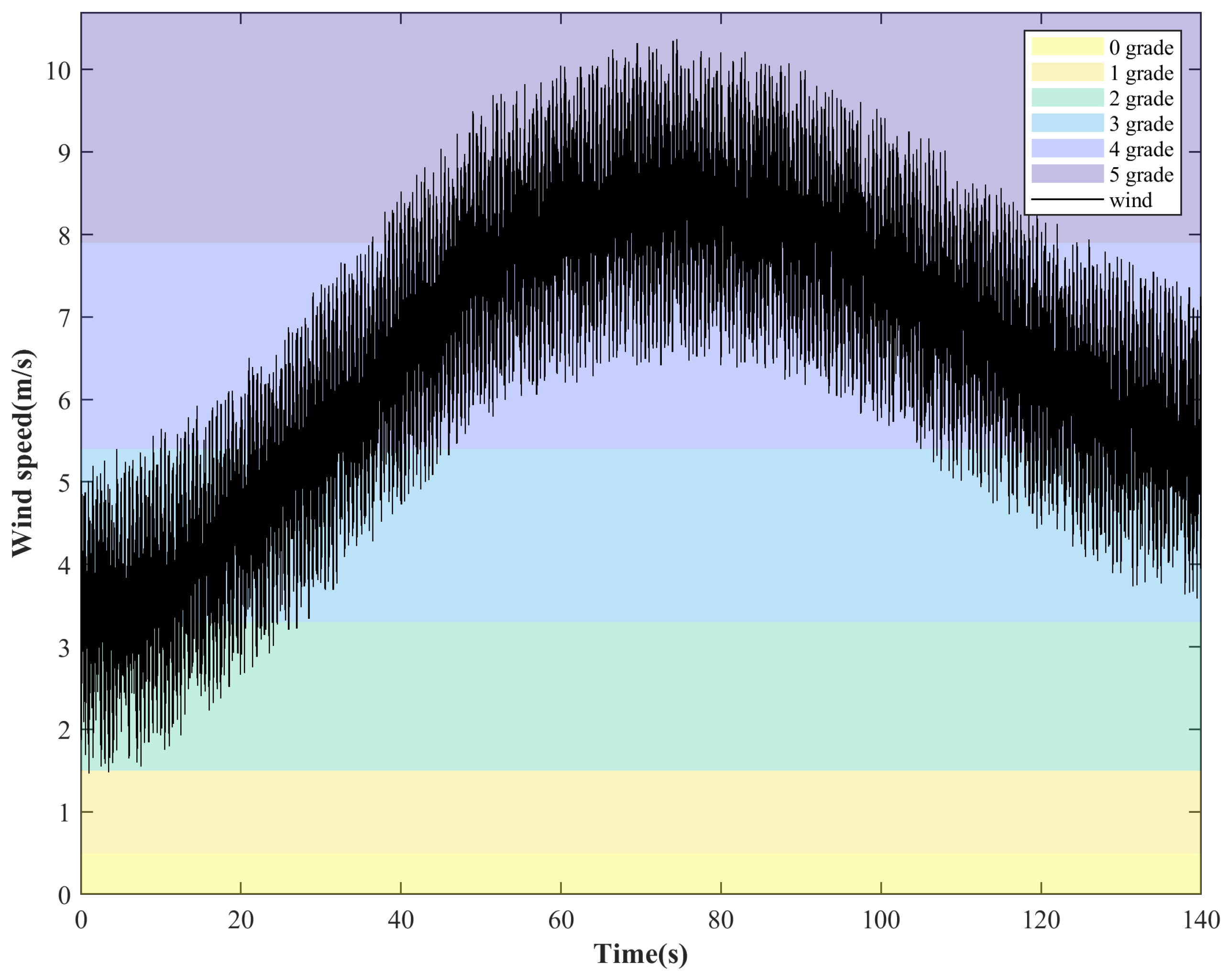 is modified to 2 while other parameters remain unchanged. The direction of the wind force is also set to be lateral at the centroid position. We use ros_bag tool to record the simulation results. The simulation video can be found at the following link: