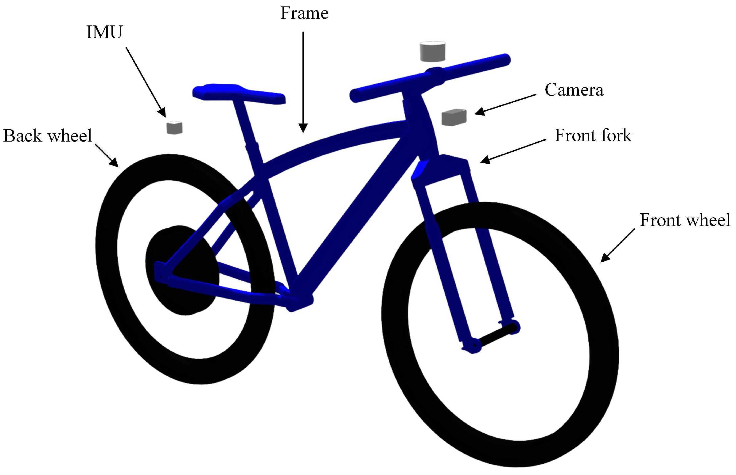 After establishing the URDF model, it is necessary to configure motor controllers for driving the joints. The rear wheel rotation joint uses a velocity controller called “JointVelocityController”, while the front fork steering joint employs a position controller called “JointPositionController”. The underlying layer of these controllers employs the PID algorithm. Proper adjustment of the PID parameters is necessary for smooth joint movements, but it is quite complicated. To simplify this process, we smooth the control command instead. As shown in Equation (