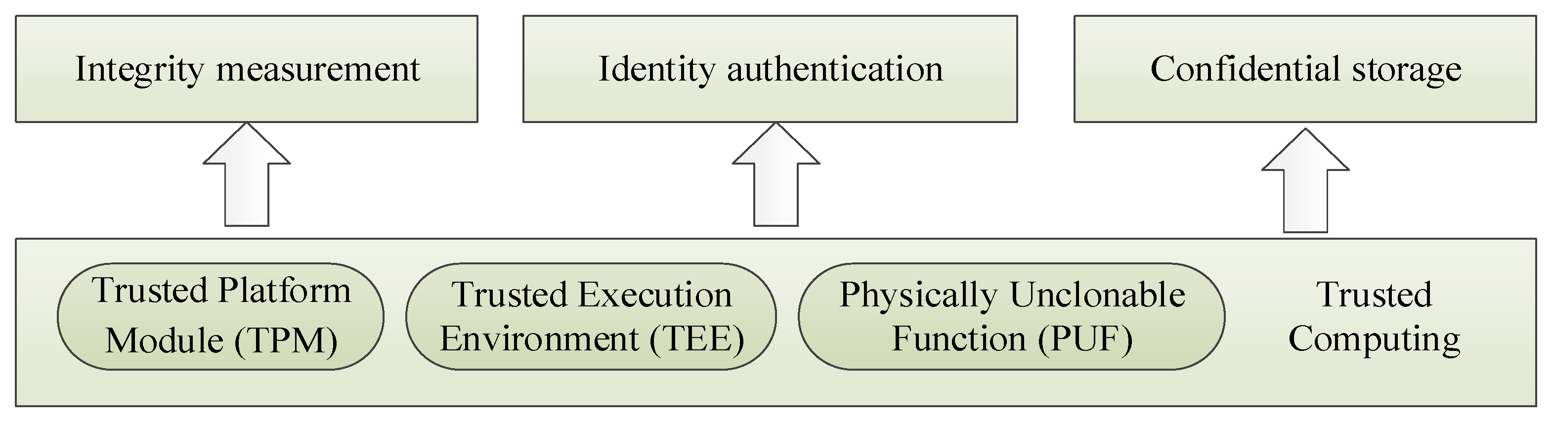 Confidential storage: TPM stores the integrity measurement value in the PCR protected by the storage root key (SRK). TPM is physically tampering-resistant; it uses a nonvolatile memory to protect the EK, SRK, and PCR. It uses a secret area taking the SRK as a root for protecting the platform data outside the EK, and a sealed storage function is provided for protecting the data from unauthorized operation by the authorized user.