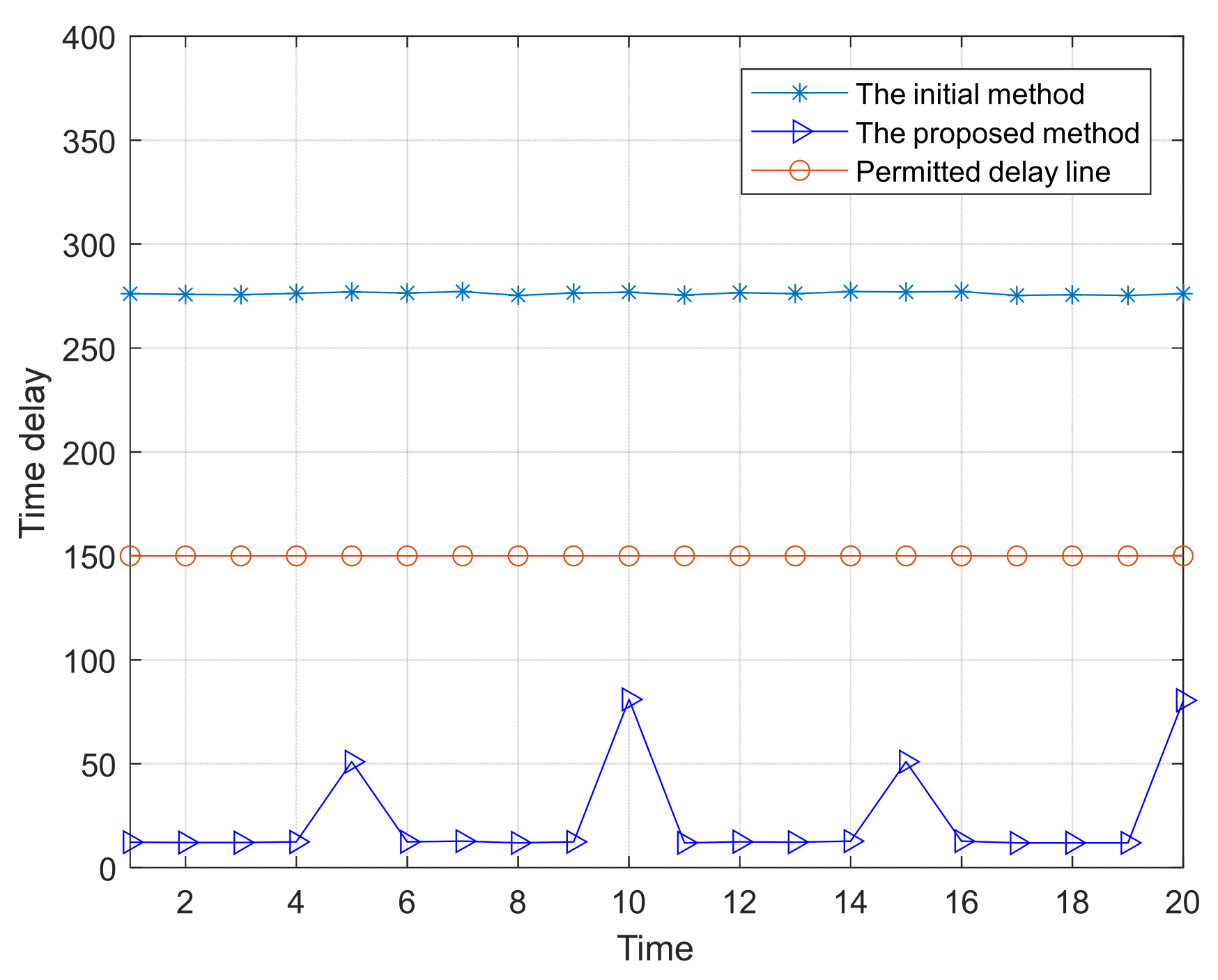 Time delay is a key factor in the availability constraints of control instructions and control functions, and industrial control systems require that control cycles and data acquisition be within acceptable delay; the time delay of a control cycle includes intra-node access control processing overlay delay and inter-node transmission overlay delay. Let the set of industrial network nodes through which business data flow in a single control cycle be N1 = {N1, N2, …, Nm1}; m1 is the number of nodes, the computation time of the access control deployed by the i-th node is ta(i), the original business processing time is tb(i), and the total computation time is tcal (i) = ta (i) + tb (i). When the command instruction is transmitted from the source node to the target node, the transmission time of the access control is tc(i), and the original service transmission time is td(i). The total transmission time is tcom(i) = tc(i) + td(i). A single control cycle (e.g., control instruction transmission, processing, and feedback) consists of multiple processes at multiple nodes, so the time delay of a single control cycle is . N1 is the set of nodes involved in the control cycle. An access control policy can be deployed to a target node when t < tmax. tmax is the maximum delay allowed for a control cycle.