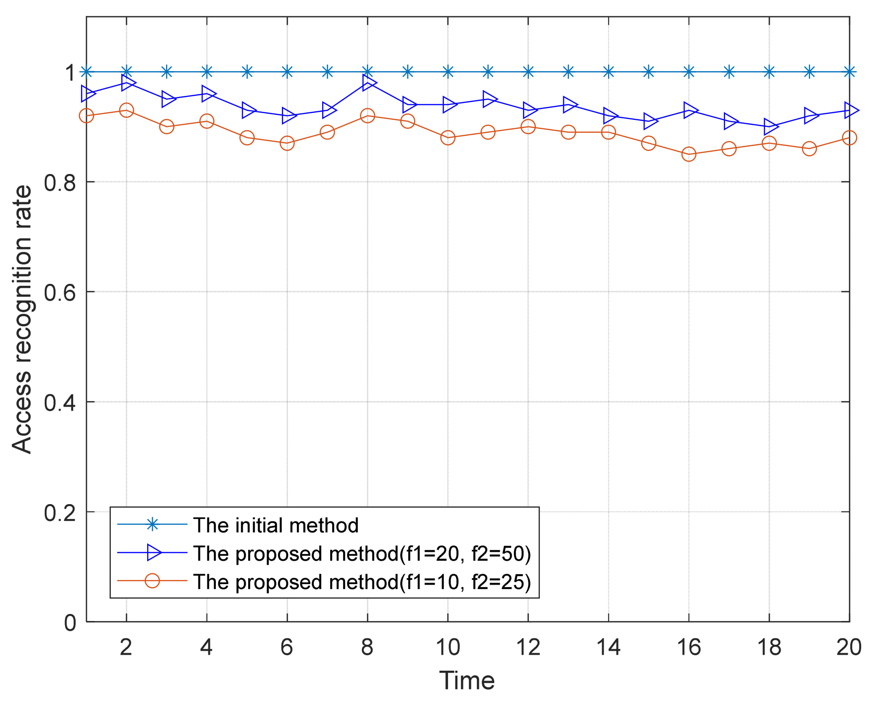 We deploy a complete access control mechanism, randomly select the instruction transmission path, and compute Equation (4); if the delay constraint is satisfied, the optimal solution of Equation (3) is one secret at a time, f1 = nt. If Equation (4) is not satisfied, we need to find a lower bound on f1 that ensures the protection effectiveness.