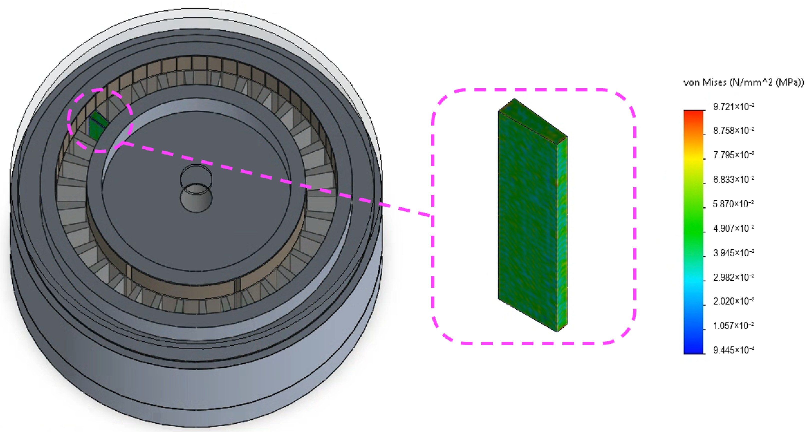 Von Mises stress distribution of the CMG in the permanent magnet region.