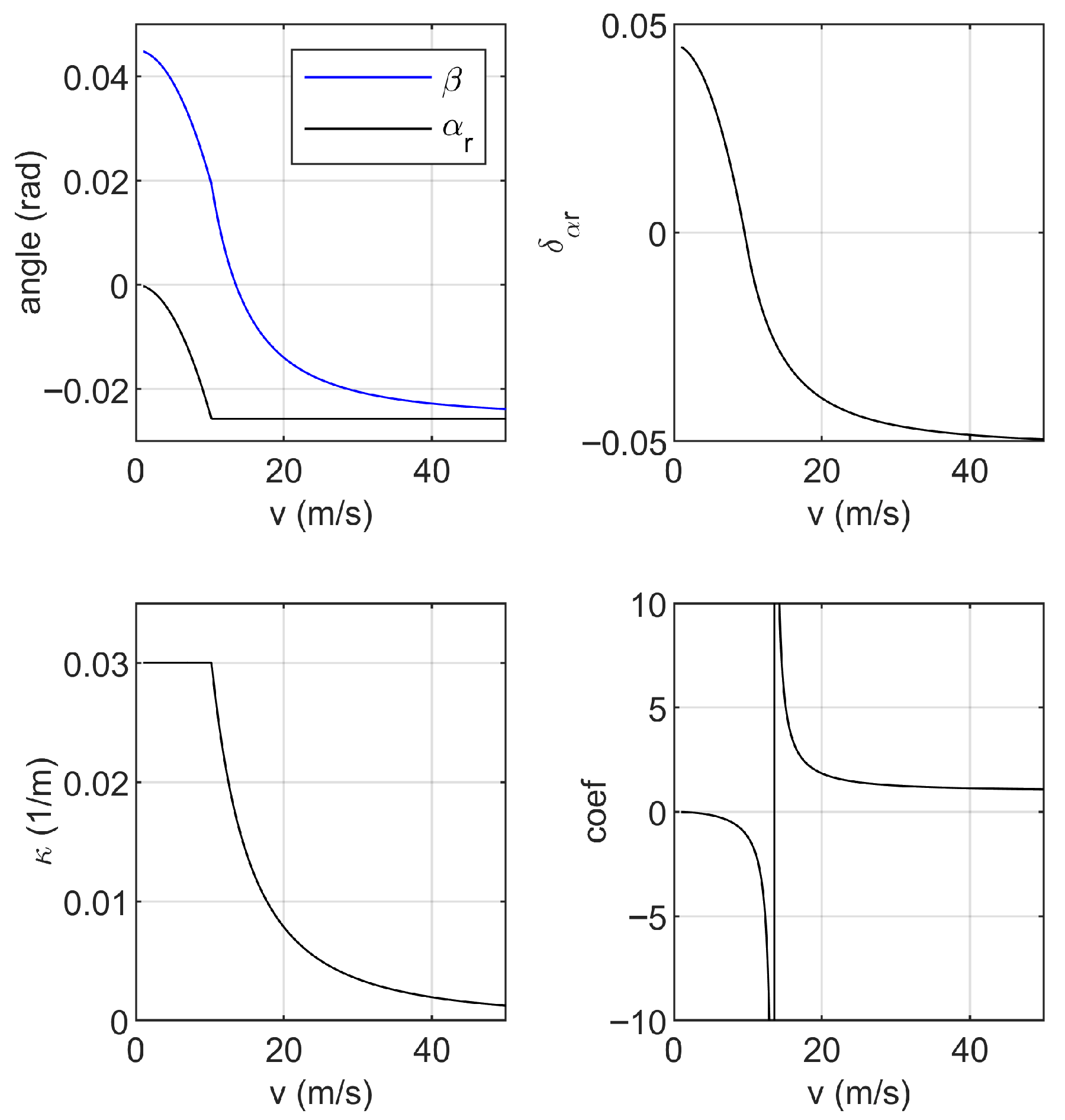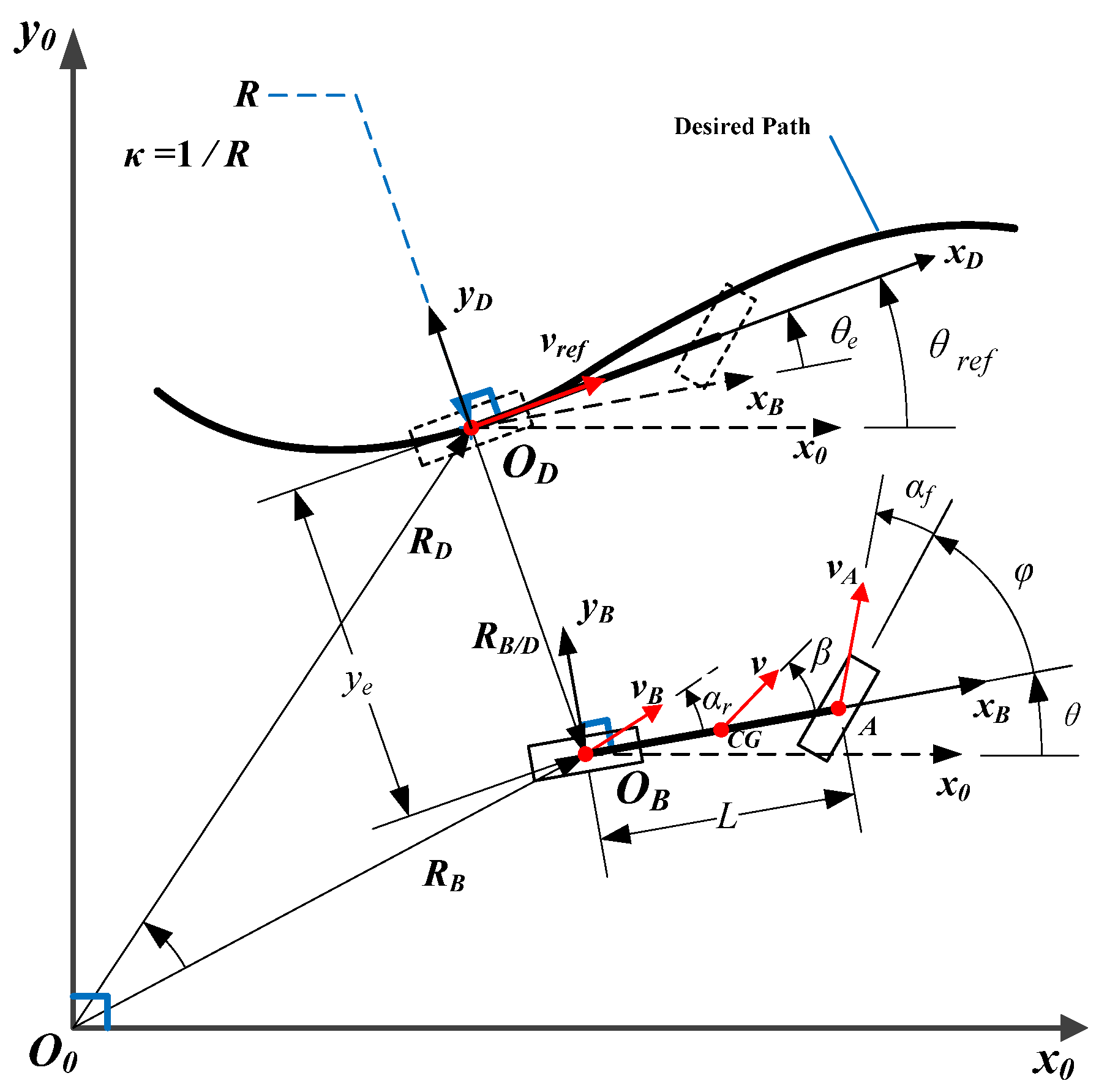 - Zhou, X.; Wang, H.; Yang, Y.; Li, Q. Adaptive prescribed performance path following control of autonomous ground vehicles with unknown tire cornering stiffness and actuator saturation. ISA Trans. 2025, 167, 218–228. [Google Scholar] [CrossRef]
