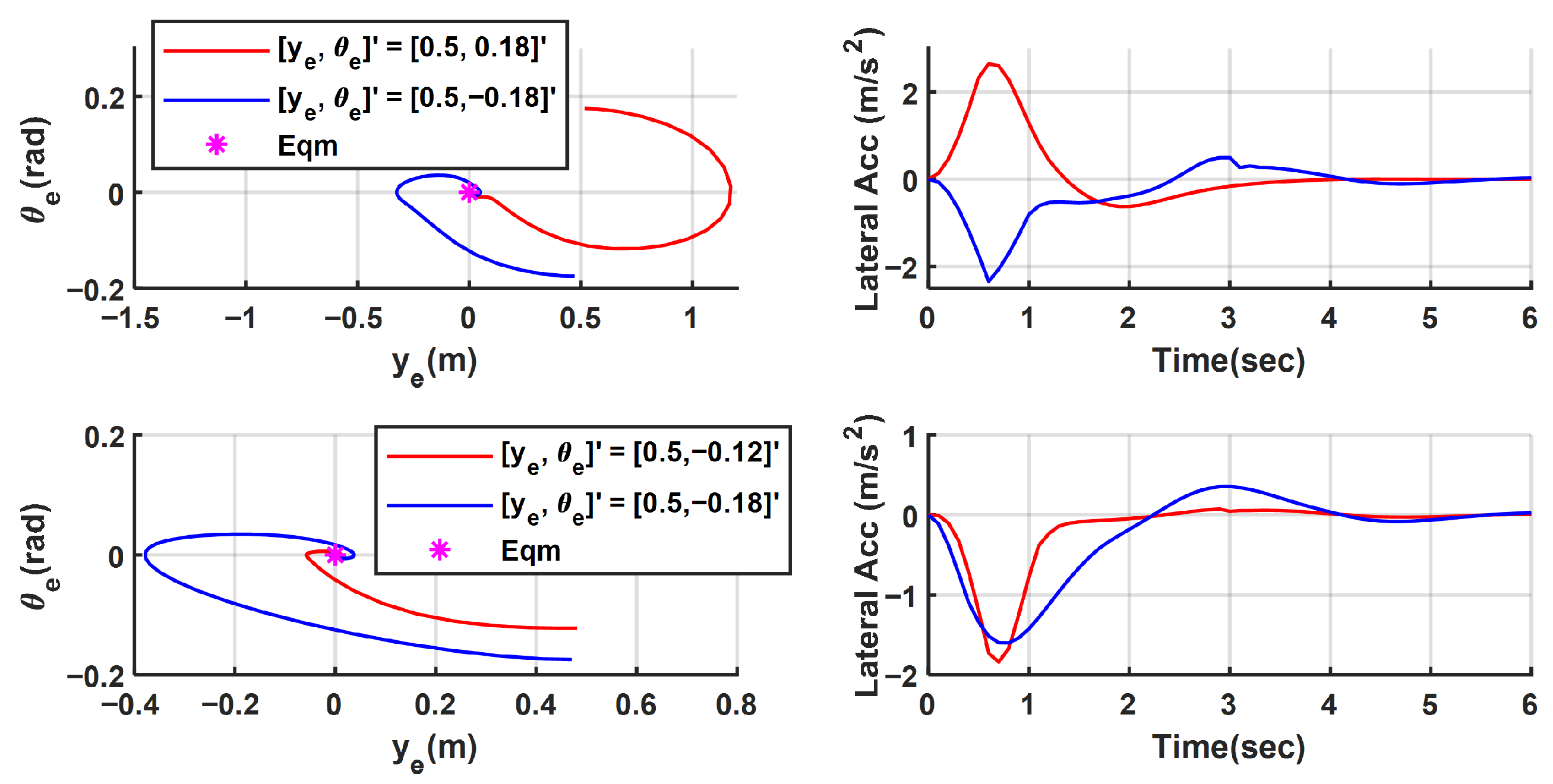 - Jung, H.; Jung, D.; Choi, S.B. LQR Control of an All-Wheel Drive Vehicle Considering Variable Input Constraint. IEEE Trans. Control Syst. Technol. 2022, 30, 85–96. [Google Scholar] [CrossRef]