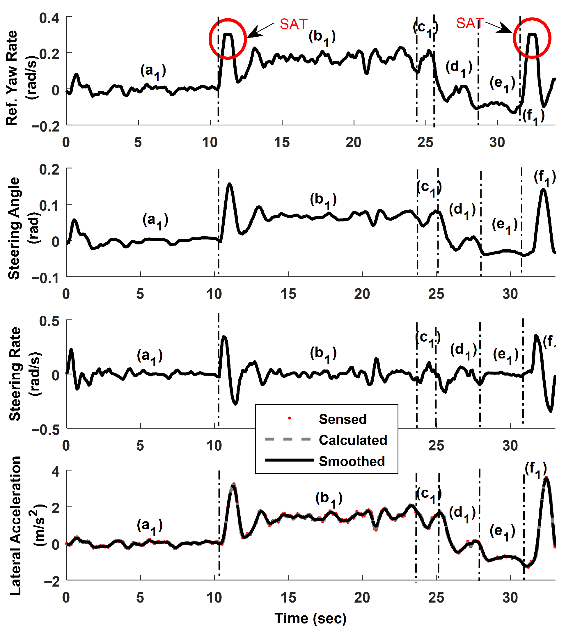 3.2. Sideslip–Yaw Rate-Based Dynamic Model