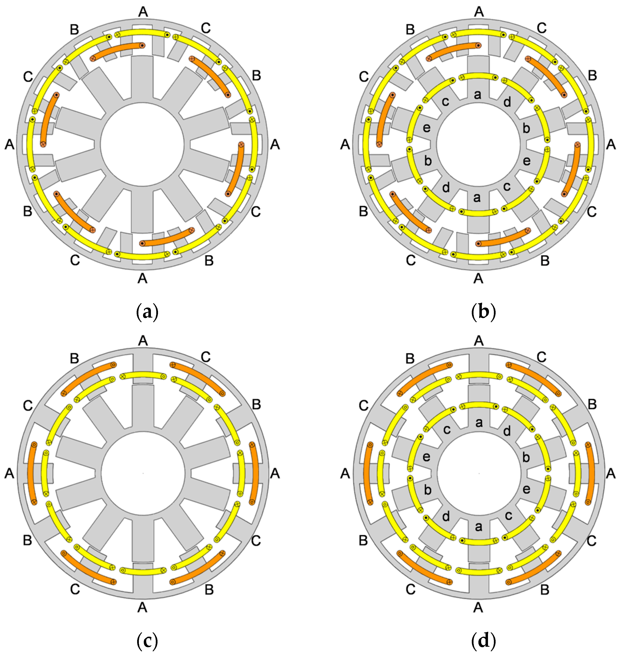 - Wang, W.; Wang, Y.; Ma, E.; Wu, L. Optimal designs of wound field switched flux machines with different DC windings configurations. CES Trans. Electr. Mach. Syst. 2022, 6, 359–367. [Google Scholar] [CrossRef]